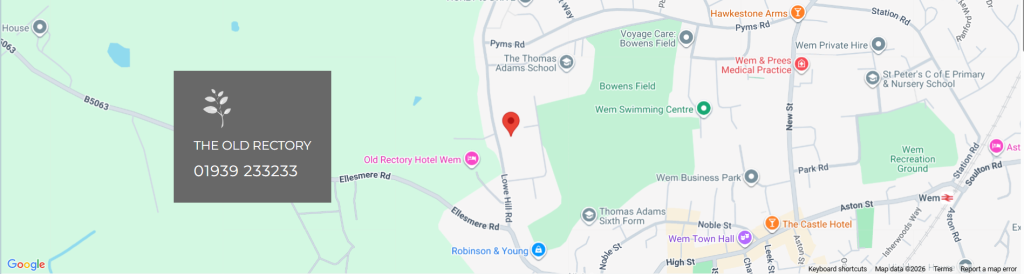 - From A49 take B5063 to Wem. On approach to Wem turn left at the T-junction alongside the church. Take 3rd turning right onto Lowe Hill Road and the hotel is on the left.